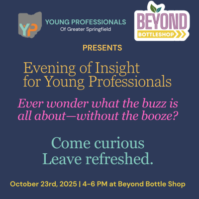 Join the Young Professionals of Greater Springfield and Beyond Bottle Shop for an evening of intentional indulgence and discovery. Explore the growing trend of “Social Beverages”—non-alcoholic and functional drinks crafted to nourish, inspire, and bring people together. Enjoy a curated tasting experience led by Amanda Ortega, owner of Beyond Bottle Shop, showcasing how today’s beverage culture is expanding beyond alcohol to offer new ways to connect and unwind.